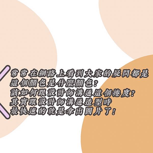 例如妳是短髮,就不能拿中長髮、長髮的捲度來溝通!